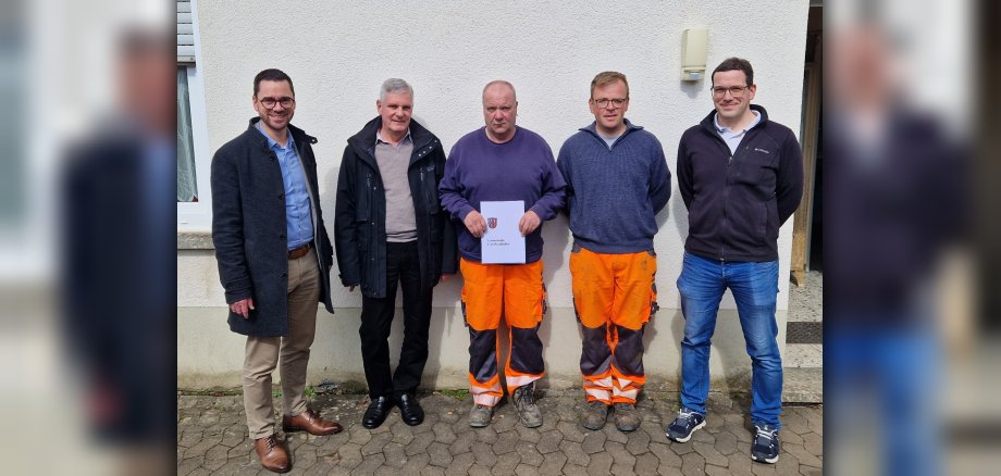 Bürgermeister Florian Fritzsch, Dieter Derbort und Jens Hensler für die Bauabteilung sowie Jan Hartmann als Mitglied des Personalrats gratulierten dem Jubilar herzlich und dankten ihm für sein langjähriges Engagement und seine Verlässlichkeit im Dienst der Gemeinde und ihrer Bürgerinnen und Bürger.