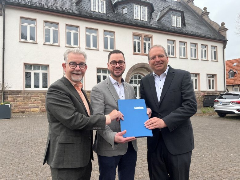 v. l. n. r.: Martin Heun, Geschäftsführer der RhönEnergie Fulda GmbH, Bürgermeister Florian Fritzsch und Ralf-Stefan Stöppler, Geschäftsführer der RhönEnergie Effizienz + Service GmbH